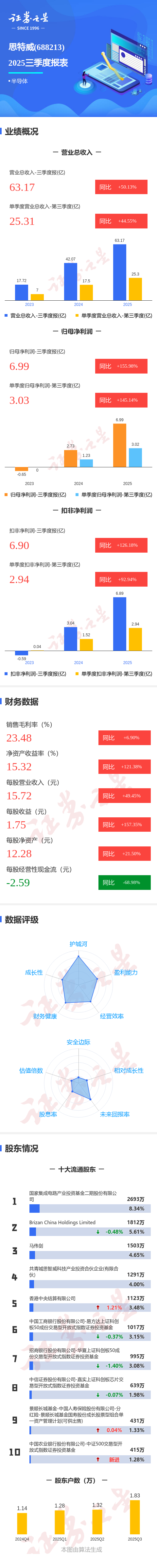 证券之星消息,思特威2025年三季报显示,前三季度公司主营收入63.17亿元,同比上升50.14%;归母净利润6.99亿元,同比上升155.99%;扣非净利润6.9亿元,同比上升126.19%;其中2025年第三季度,公司单季度主营收入25.31亿元,同比上升44.56%;单季度归母净利润3.03亿元,同比上升145.14%;单季度扣非净利润2.94亿元,同比上升92.94%;负债率52.83%,投资收益292.92万元,财务费用3556.34万元,毛利率23.48%。