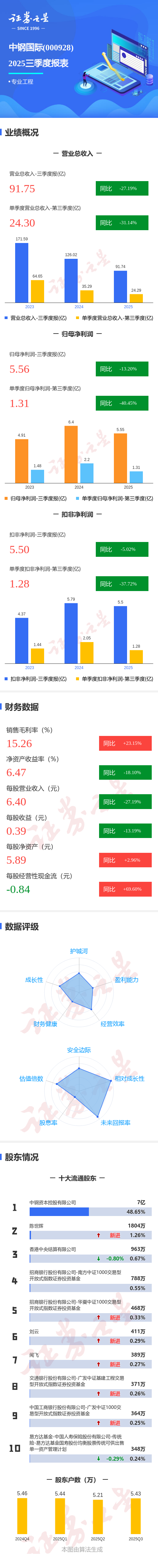 证券之星消息,中钢国际2025年三季报显示,前三季度公司主营收入91.75亿元,同比下降27.2%;归母净利润5.56亿元,同比下降13.21%;扣非净利润5.5亿元,同比下降5.02%;其中2025年第三季度,公司单季度主营收入24.3亿元,同比下降31.14%;单季度归母净利润1.31亿元,同比下降40.46%;单季度扣非净利润1.28亿元,同比下降37.72%;负债率66.04%,投资收益3227.85万元,财务费用-8199.72万元,毛利率15.26%。