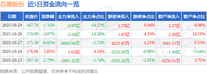 10月29日的资金流向数据方面,主力资金净流出3.97亿元,占总成交额14.12%,游资资金净流入1.7亿元,占总成交额6.04%,散户资金净流入2.27亿元,占总成交额8.08%。