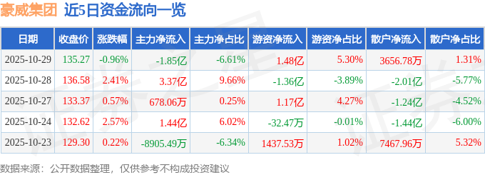 10月29日的资金流向数据方面,主力资金净流出1.85亿元,占总成交额6.61%,游资资金净流入1.48亿元,占总成交额5.3%,散户资金净流入3656.78万元,占总成交额1.31%。