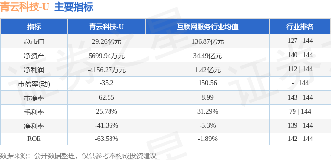 该股主要指标及行业内排名如下: