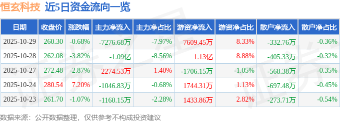 证券之星消息,截至2025年10月29日收盘,恒玄科技(688608)报收于260.3元,下跌0.68%,换手率2.09%,成交量3.53万手,成交额9.13亿元。