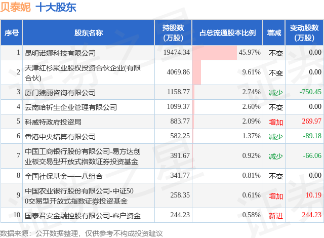 根据贝泰妮2025年三季报公布的十大股东详情如下: