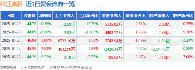证券之星消息,截至2025年10月29日收盘,张江高科(600895)报收于44.73元,下跌0.36%,换手率2.93%,成交量45.41万手,成交额20.28亿元。