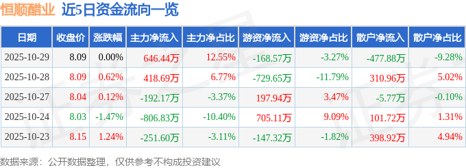 证券之星消息,截至2025年10月29日收盘,恒顺醋业(600305)报收于8.09元,上涨0.0%,换手率0.58%,成交量6.39万手,成交额5150.03万元。