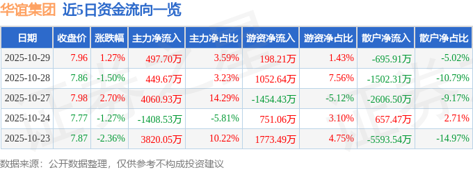 证券之星消息,截至2025年10月29日收盘,华谊集团(600623)报收于7.96元,上涨1.27%,换手率0.94%,成交量17.53万手,成交额1.39亿元。