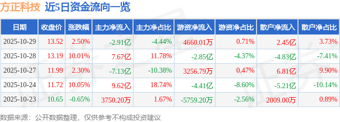 证券之星消息,截至2025年10月29日收盘,方正科技(600601)报收于13.52元,上涨2.5%,换手率11.82%,成交量492.84万手,成交额65.61亿元。