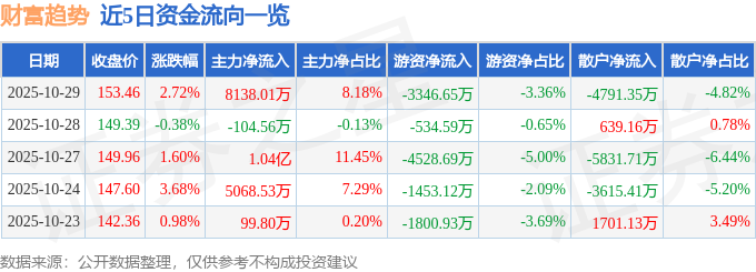 10月29日的资金流向数据方面,主力资金净流入8138.01万元,占总成交额8.18%,游资资金净流出3346.65万元,占总成交额3.36%,散户资金净流出4791.35万元,占总成交额4.82%。