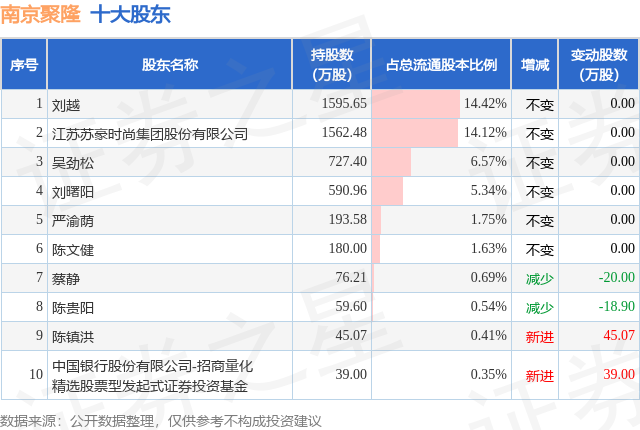 根据南京聚隆2025年三季报公布的十大股东详情如下: