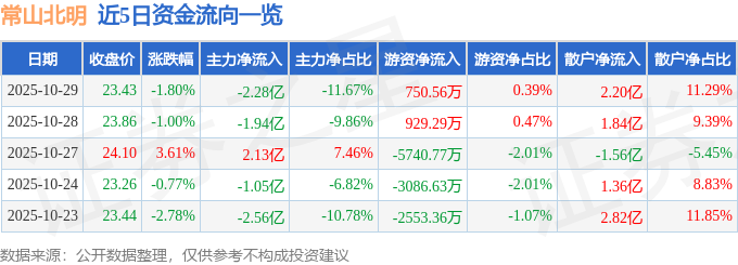 证券之星消息,截至2025年10月29日收盘,常山北明(000158)报收于23.43元,下跌1.8%,换手率5.27%,成交量83.75万手,成交额19.49亿元。
