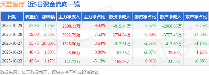 证券之星消息,截至2025年10月29日收盘,天益医疗(301097)报收于57.96元,下跌1.76%,换手率18.56%,成交量5.37万手,成交额3.06亿元。