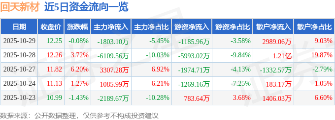 证券之星消息,截至2025年10月29日收盘,回天新材(300041)报收于12.25元,下跌0.08%,换手率4.99%,成交量27.18万手,成交额3.31亿元。