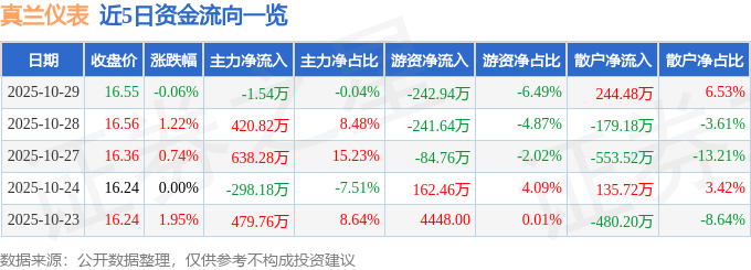 证券之星消息,截至2025年10月29日收盘,真兰仪表(301303)报收于16.55元,下跌0.06%,换手率2.22%,成交量2.26万手,成交额3743.65万元。
