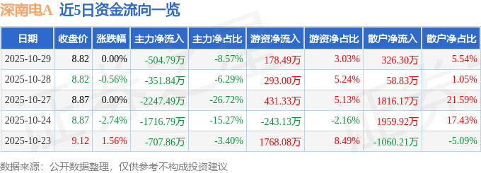 10月29日的资金流向数据方面,主力资金净流出504.79万元,占总成交额8.57%,游资资金净流入178.49万元,占总成交额3.03%,散户资金净流入326.3万元,占总成交额5.54%。