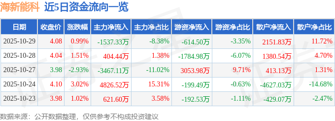 证券之星消息,截至2025年10月29日收盘,海新能科(300072)报收于4.08元,上涨0.99%,换手率1.96%,成交量45.65万手,成交额1.84亿元。