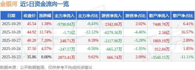 证券之星消息,截至2025年10月29日收盘,金银河(300619)报收于45.54元,上涨1.38%,换手率17.62%,成交量25.63万手,成交额11.61亿元。