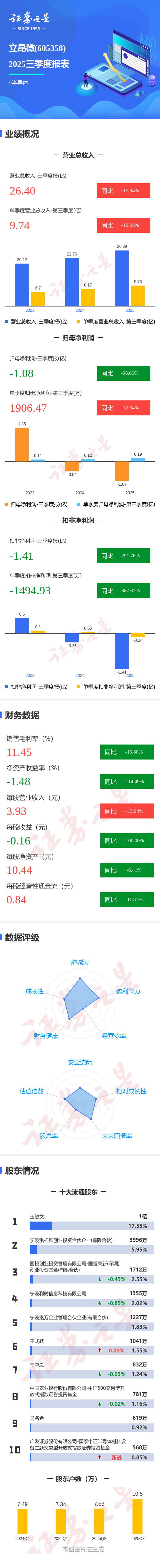 证券之星消息,立昂微2025年三季报显示,前三季度公司主营收入26.4亿元,同比上升15.94%;归母净利润-1.08亿元,同比下降98.67%;扣非净利润-1.41亿元,同比下降291.77%;其中2025年第三季度,公司单季度主营收入9.74亿元,同比上升19.09%;单季度归母净利润1906.47万元,同比上升52.34%;单季度扣非净利润-1494.93万元,同比下降367.63%;负债率57.68%,投资收益927.85万元,财务费用2.12亿元,毛利率11.45%。