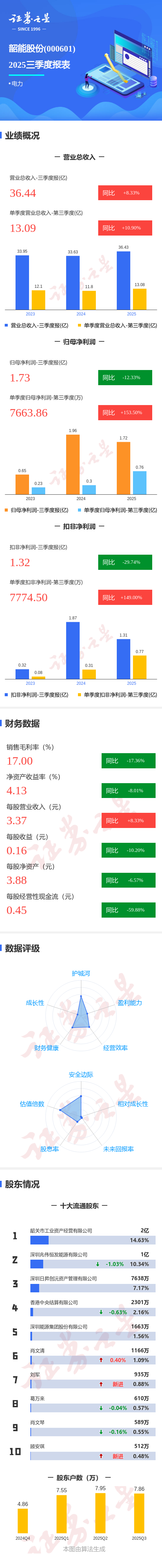 证券之星消息,韶能股份2025年三季报显示,前三季度公司主营收入36.44亿元,同比上升8.33%;归母净利润1.73亿元,同比下降12.34%;扣非净利润1.32亿元,同比下降29.74%;其中2025年第三季度,公司单季度主营收入13.09亿元,同比上升10.9%;单季度归母净利润7663.86万元,同比上升153.51%;单季度扣非净利润7774.5万元,同比上升149.0%;负债率66.12%,投资收益2347.91万元,财务费用1.7亿元,毛利率17.0%。