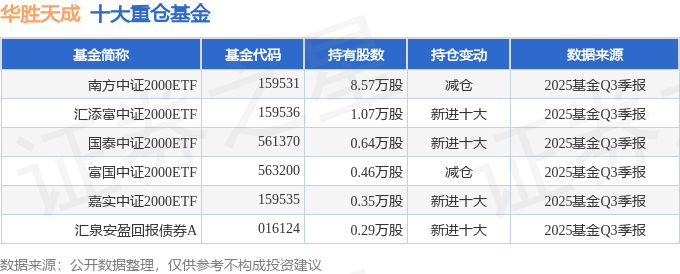 持有华胜天成最多的基金为南方中证2000ETF,目前规模为5.43亿元,最新净值1.3537(10月29日),较上一交易日上涨0.33%,近一年上涨33.49%。该基金现任基金经理为李佳亮。