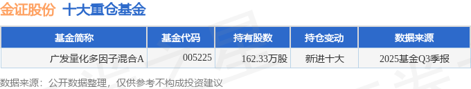 持有金证股份最多的基金为广发量化多因子混合A,目前规模为36.18亿元,最新净值2.3105(10月29日),较上一交易日上涨0.49%,近一年上涨61.13%。该基金现任基金经理为易威 李育鑫。