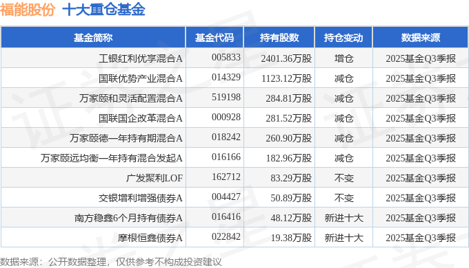 持有福能股份最多的基金为工银红利优享混合A,目前规模为49.23亿元,最新净值1.1361(10月29日),较上一交易日上涨0.35%,近一年上涨13.19%。该基金现任基金经理为尤宏业。