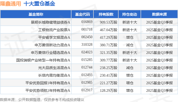持有隆鑫通用最多的基金为景顺长城稳健增益债券A,目前规模为94.72亿元,最新净值1.1569(10月29日),较上一交易日上涨0.19%,近一年上涨8.89%。该基金现任基金经理为彭成军。