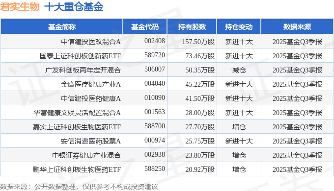 持有君实生物最多的基金为中信建投医改混合A,目前规模为5.82亿元,最新净值1.9122(10月29日),较上一交易日下跌0.85%,近一年上涨15.27%。该基金现任基金经理为谢玮。