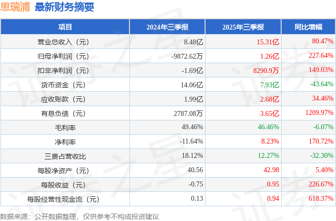 据证券之星公开数据整理,近期思瑞浦(688536)发布2025年三季报。根据财报显示,思瑞浦营收净利润同比双双增长。截至本报告期末,公司营业总收入15.31亿元,同比上升80.47%,归母净利润1.26亿元,同比上升227.64%。按单季度数据看,第三季度营业总收入5.82亿元,同比上升70.29%,第三季度归母净利润6032.32万元,同比上升282.31%。