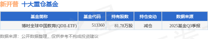持有新开普最多的基金为博时全球中国教育(QDII-ETF),目前规模为3.98亿元,最新净值0.571(10月28日),较上一交易日下跌1.07%,近一年上涨8.66%。该基金现任基金经理为万琼。