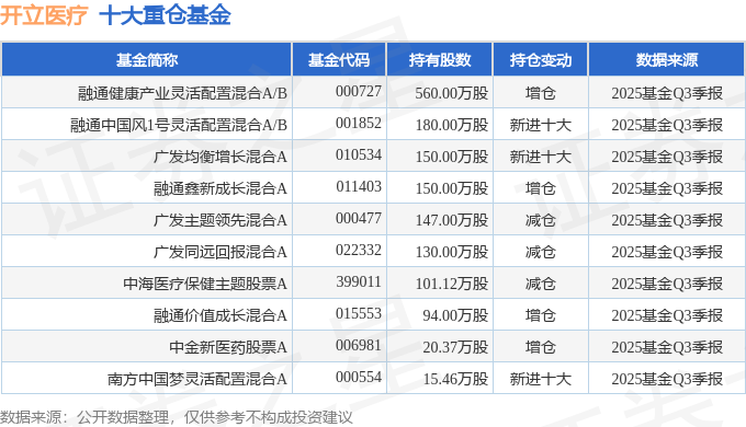 持有开立医疗最多的基金为融通健康产业灵活配置混合A/B,目前规模为18.16亿元,最新净值2.782(10月29日),较上一交易日下跌1.31%,近一年上涨7.68%。该基金现任基金经理为万民远。