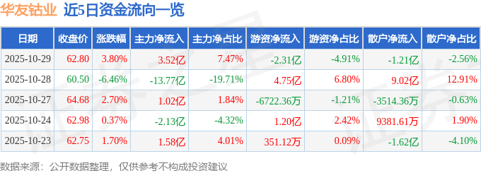 10月29日的资金流向数据方面,主力资金净流入3.52亿元,占总成交额7.47%,游资资金净流出2.31亿元,占总成交额4.91%,散户资金净流出1.21亿元,占总成交额2.56%。