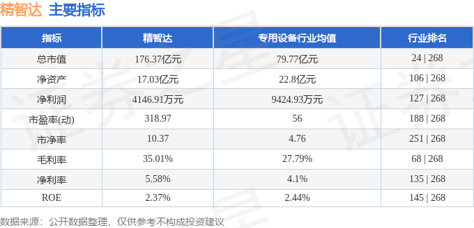 该股主要指标及行业内排名如下: