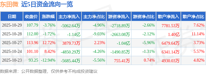 证券之星消息,截至2025年10月29日收盘,东田微(301183)报收于107.79元,下跌3.76%,换手率16.04%,成交量9.4万手,成交额10.21亿元。