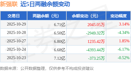 证券之星消息,10月29日,新强联(300850)融资买入2.47亿元,融资偿还2.27亿元,融资净买入2026.37万元,融资余额6.68亿元,近20个交易日中有13个交易日出现融资净买入。