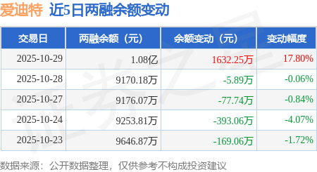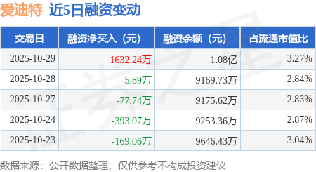 证券之星消息,10月29日,爱迪特(301580)融资买入2543.06万元,融资偿还910.81万元,融资净买入1632.24万元,融资余额1.08亿元。