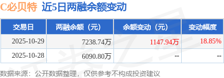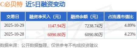 证券之星消息,10月29日,C必贝特(688759)融资买入5498.06万元,融资偿还4350.12万元,融资净买入1147.94万元,融资余额7238.74万元。