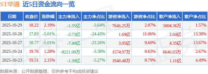 10月29日的资金流向数据方面,主力资金净流出1.35亿元,占总成交额3.64%,游资资金净流入7646.25万元,占总成交额2.07%,散户资金净流入5804.36万元,占总成交额1.57%。