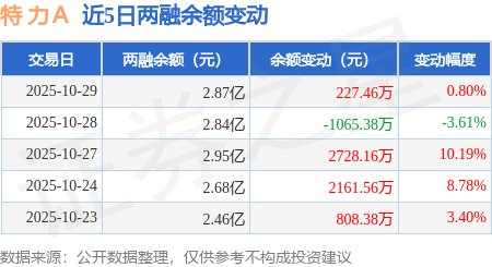 证券之星消息,10月29日,特 力A(000025)融资买入3071.95万元,融资偿还2852.05万元,融资净买入219.9万元,融资余额2.85亿元。