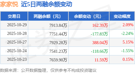 证券之星消息,10月29日,家家悦(603708)融资买入387.78万元,融资偿还227.16万元,融资净买入160.63万元,融资余额7889.66万元,近20个交易日中有11个交易日出现融资净买入。