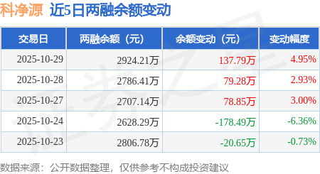 证券之星消息,10月29日,科净源(301372)融资买入482.08万元,融资偿还344.29万元,融资净买入137.79万元,融资余额2924.21万元,近3个交易日已连续净买入累计295.92万元。