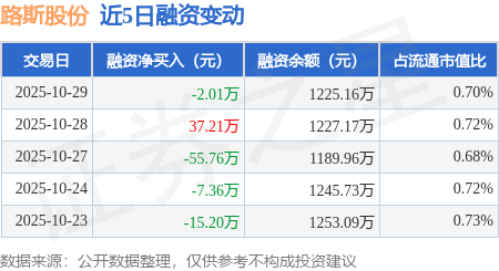 证券之星消息,10月29日,路斯股份(920419)融资买入98.16万元,融资偿还100.17万元,融资净卖出2.01万元,融资余额1225.16万元。
