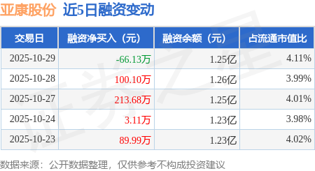 证券之星消息,10月29日,亚康股份(301085)融资买入550.47万元,融资偿还616.6万元,融资净卖出66.13万元,融资余额1.25亿元。