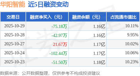 证券之星消息,10月29日,华阳智能(301502)融资买入391.74万元,融资偿还466.92万元,融资净卖出75.18万元,融资余额1.16亿元。