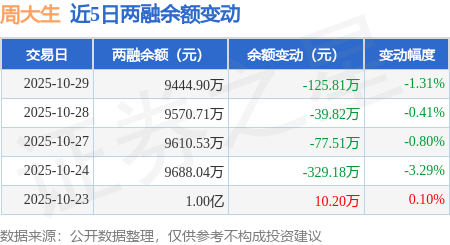 融资融券余额9444.9万元,较昨日下滑1.31%。
