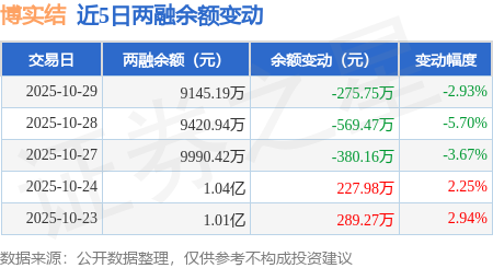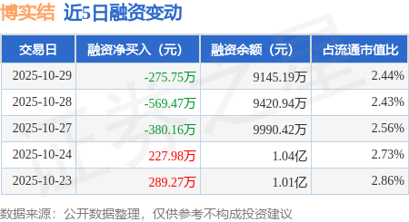 证券之星消息,10月29日,博实结(301608)融资买入1421.2万元,融资偿还1696.95万元,融资净卖出275.75万元,融资余额9145.19万元。