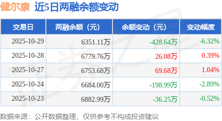 证券之星消息,10月29日,健尔康(603205)融资买入211.38万元,融资偿还640.03万元,融资净卖出428.64万元,融资余额6350.83万元。