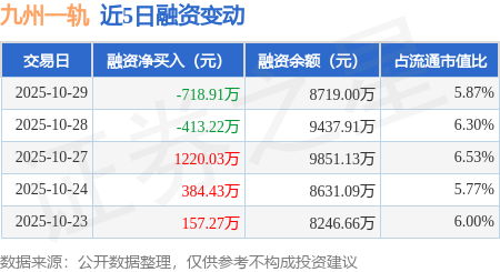 证券之星消息,10月29日,九州一轨(688485)融资买入656.28万元,融资偿还1375.18万元,融资净卖出718.91万元,融资余额8719.0万元,近20个交易日中有12个交易日出现融资净买入。