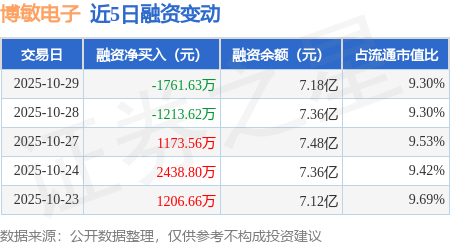 证券之星消息,10月29日,博敏电子(603936)融资买入5926.33万元,融资偿还7687.95万元,融资净卖出1761.63万元,融资余额7.18亿元。