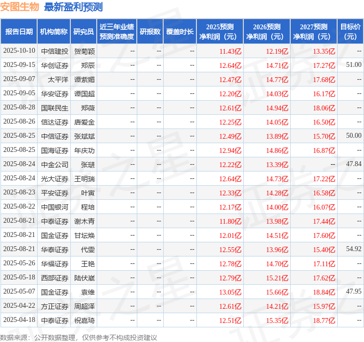 最新盈利预测明细如下: