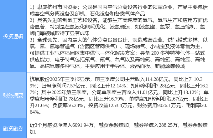 证券之星消息,杭氧股份10月30日涨停收盘,收盘价29.52元。该股于10点56分涨停,2次打开涨停,截止收盘封单资金为1270.41万元,占其流通市值0.04%。